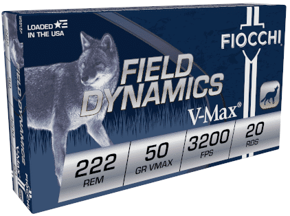 Fiocchi Field Dynamics .222 REM 50 grain V-MAX 3200 FPS (20 rd box)